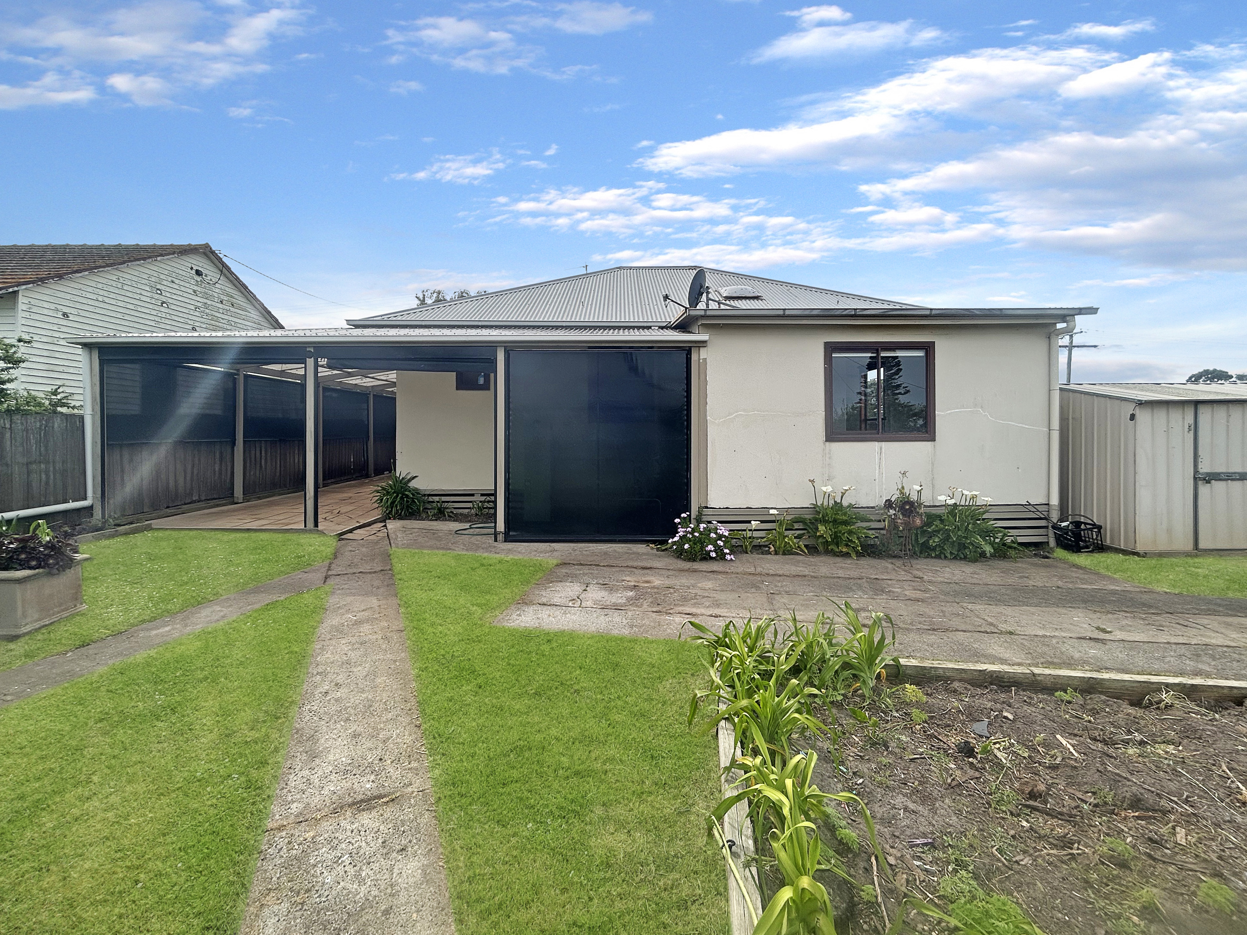 Inside, the home features three bedrooms (or two plus a study) and has been freshly updated with new carpets throughout. The light-filled living area is warmed by an updated gas heater, while the centrally located kitchen includes a modern 900mm gas cooktop and plenty of cupboard storage space. The bathroom offers a bath with stand over shower, complemented by a separate toilet for added convenience.