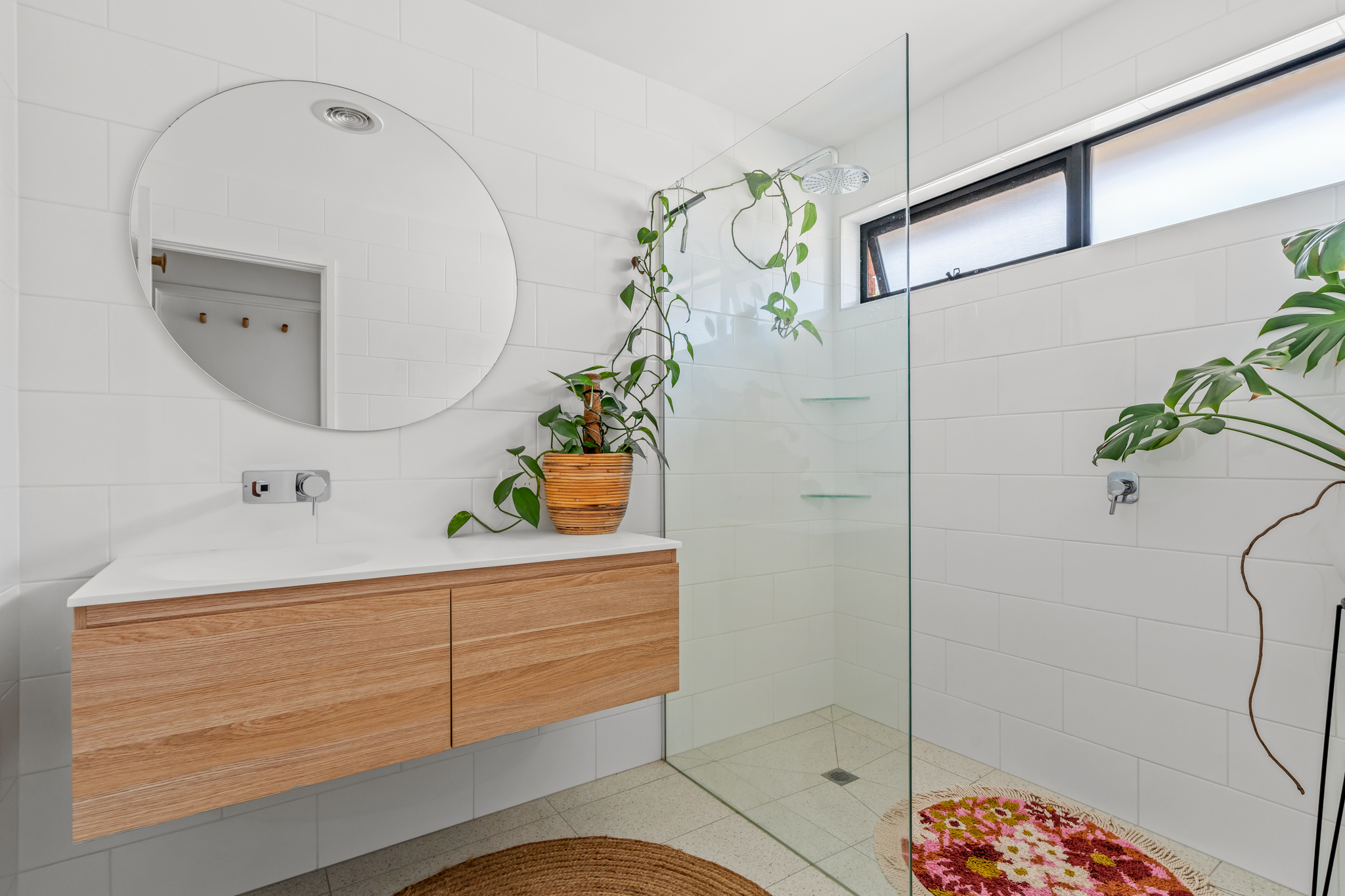 All three bedrooms include built-in robes and plush new carpet, serviced by a stunning renovated bathroom featuring a walk-in shower and floor-to-ceiling tiles.