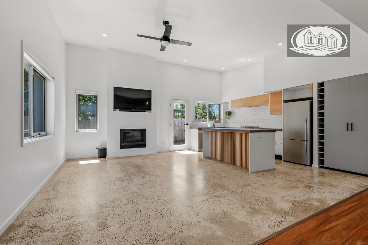 For SaleTucked away in a peaceful court just moments from Portland’s vibrant CBD and waterfront, this impeccably renovated four-bedroom, three-bathroom residence delivers an enviable lifestyle of ease and sophistication. The home has been seamlessly reimagined into one expansive coastal retreat designed for modern living. At its heart, a light-filled open-plan space connects the designer kitchen, dining, and living zones. Here, a large concrete island bench, quality appliances, and polished concrete floors create a refined yet relaxed atmosphere, while a gas log fireplace adds warmth and ambience for year-round comfort.
