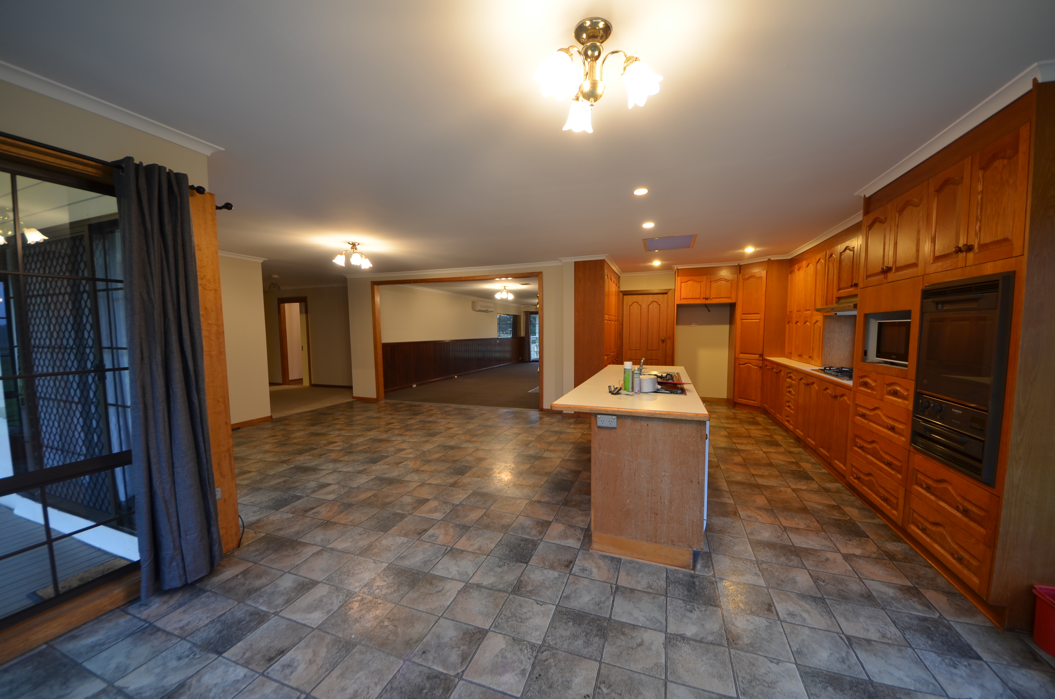 The spacious kitchen provides ample bench and cupboard space, a gas cooktop, and adjoins a generous meals area, making it ideal for everyday family living.