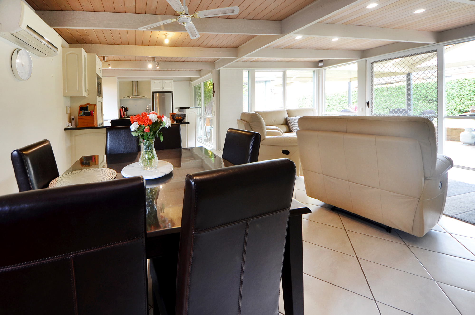 The open plan space that is the central hub of the home, features a renovated kitchen with quality appliances, dishwasher and breakfast bar to enjoy your meals. The tiled area adjoins the dining area which is home for the large dining table and even has space for a study nook and features gas heating. The lounge has ample room for a 3 seater couch and separate chairs and has access onto the paved enclosed entertaining area via glass sliding doors. The other 2 bedrooms are located at the back of the home and both are a great size and feature built-in robes in both rooms. The renovated bathroom features a new vanity unit, shower over bath and a separate toilet. Even the laundry has been renovated and provides room for a 2nd fridge, lots of storage and direct access to the back yard. The large shed has been extended to allow for storage for a large caravan and features a concrete floor, power and even a fireplace.
