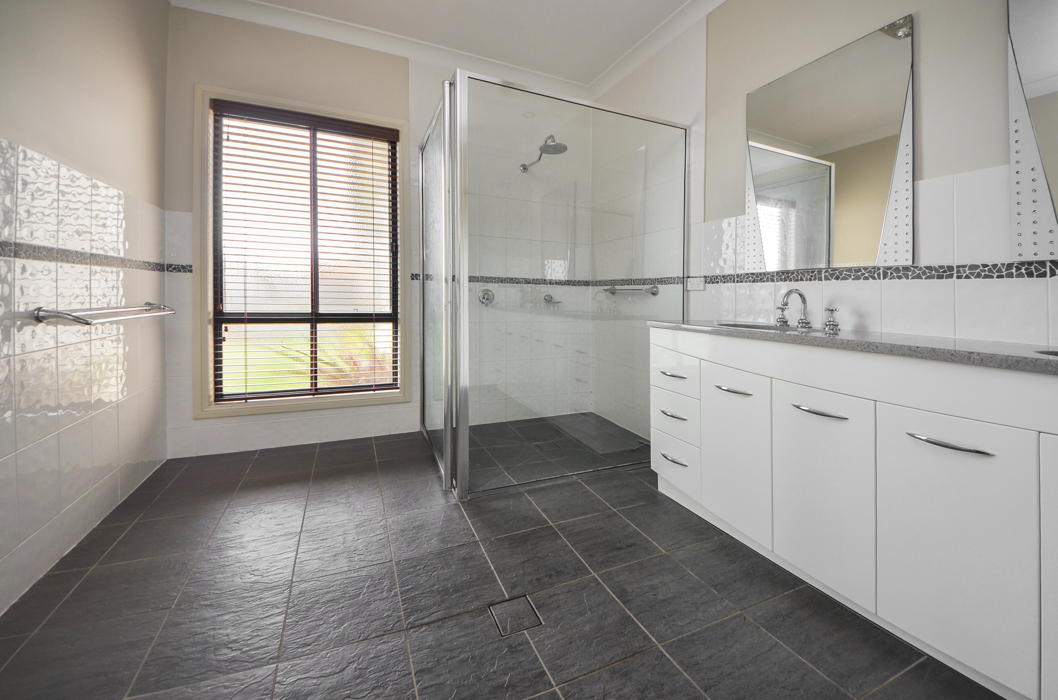 Let!This modern 4 bedroom home consists of 4 very large bedrooms all with walk in robes, and quality blinds and carpets. The master bedroom boasts a very large ensuite, and there is a generous size main bathroom with tiled flooring, large spa bath, double vanity and open shower area. The modern kitchen has plenty of bench and cupboard space, gas cooking and electric oven. A large open living/dining area is located off the kitchen and has access through sliding glass doors onto the back deck and entertaining area.