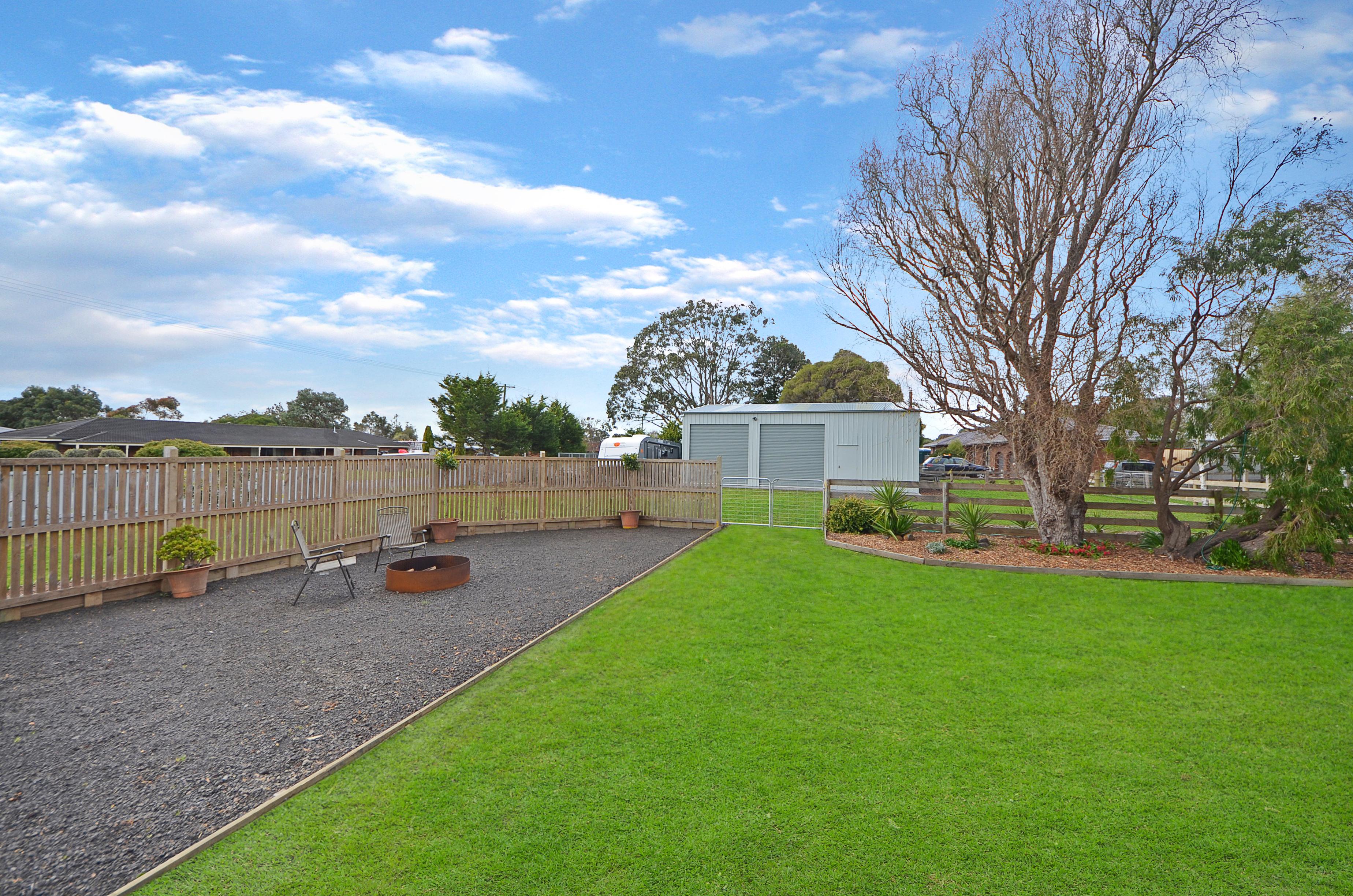 This home has a fresh spacious kitchen with good storage, dining area, 2 separate living areas and 4 bedrooms or 3 bedrooms + study. The master bedroom has an ensuite and all bedrooms have new built-in robes and ceiling fans. A combustion wood heater is located in the main living area and includes transfer fans to disburse the heat throughout the home keeping it warm in the cold winter months. Outdoors there is an undercover entertaining area and large enclosed yard creating a great space for kids to safely explore. There is also a single carport and a large 3 bay shed (10.8 x 9m) with 3.6mtr high doors perfect for a caravan or large boat which is a recent addition to the property. With low maintenance, landscaped gardens, established fruit trees, shedding and chicken coop there is a rural feel yet only 5 minutes from Portland’s CBD. This property is just right and will tick the box to make it your new home. To view this property call Portland Seaview on 5523 3822