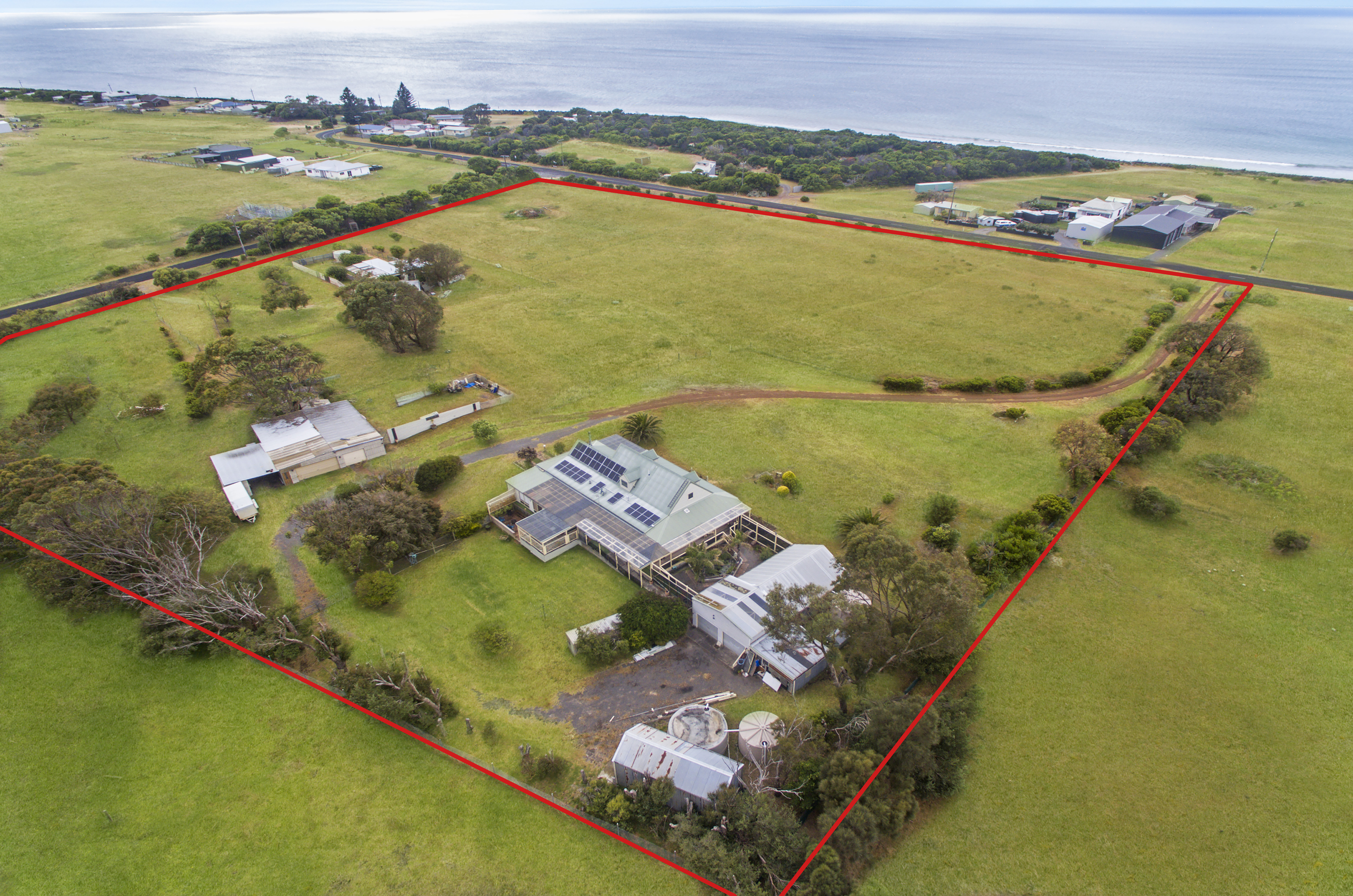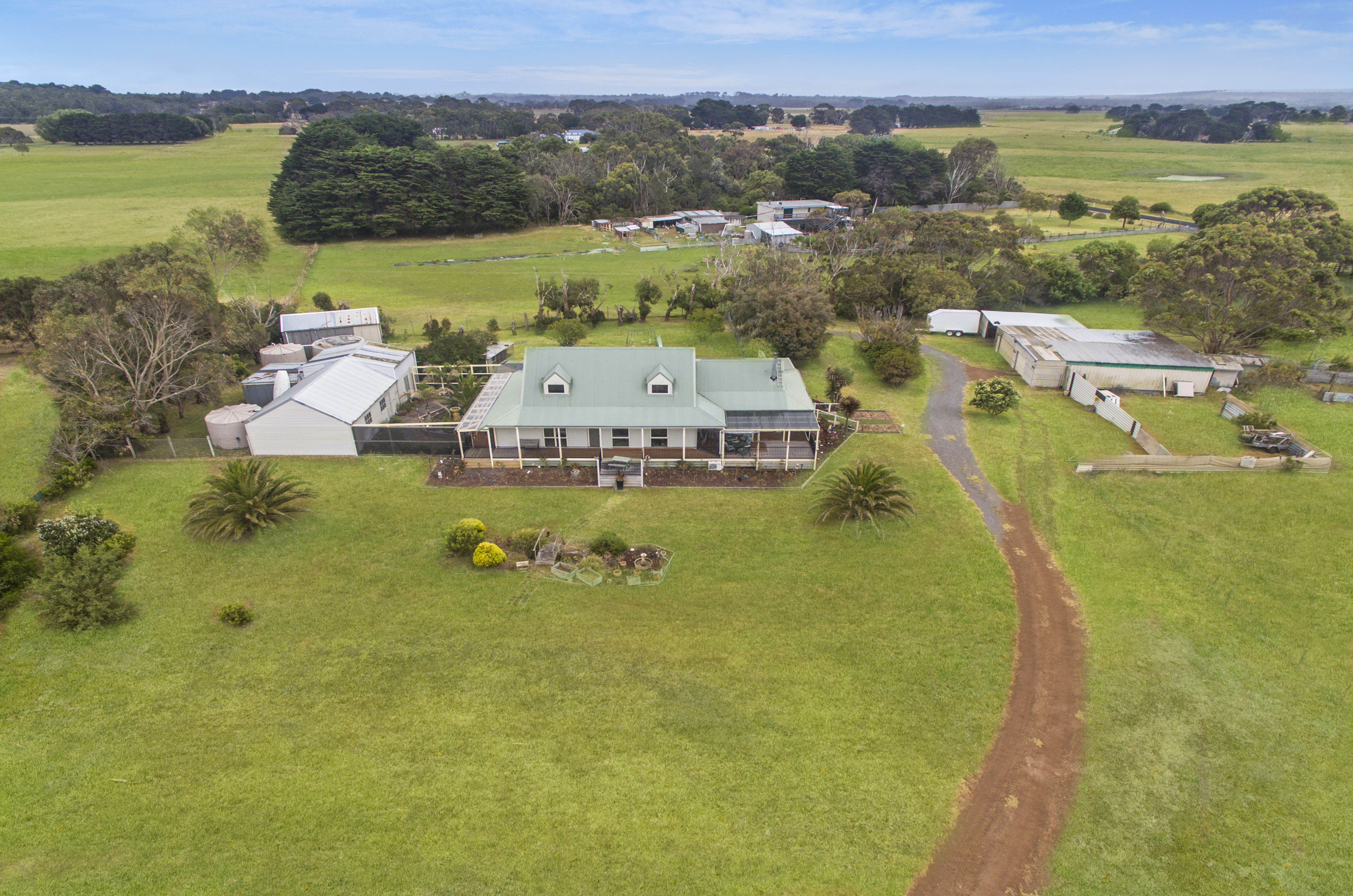 The main residence includes open plan kitchen, dining and family room with high cathedral ceilings. The kitchen has timber cabinetry and timber benchtops, corner pantry, dishwasher and gas appliances. A separate formal lounge room ensures there is space for the family to spread out and be comfortable with wood and reverse cycle heating. The main homestead features 4 bedrooms + office and 3 bathrooms. The master bedroom is located downstairs with ensuite, walk-in robe and delightful ocean views. Located upstairs are 2 further bedrooms with quaint attic windows offering views of the southern ocean, and also includes a bathroom with spa bath.